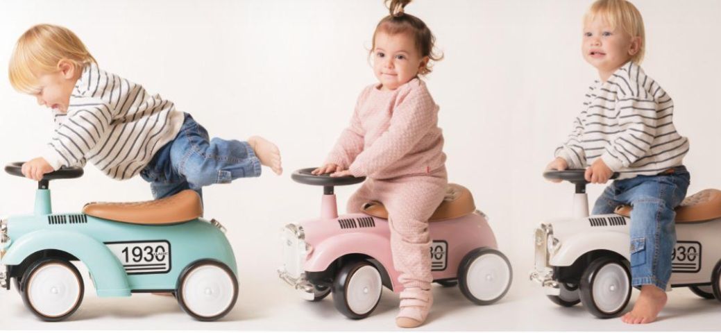 בימבה בסגנון רטרו עם תא אחסון בתחתית המושב והגה המשמיע קולות של צופר.